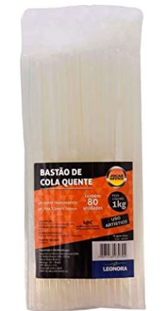 Bastão de cola quente, comercializado em unidades ou por quilograma.